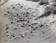 現実にその後、或る渇水期に、河床にまるで突きたって林立したかの様に散布していた土器片が、その後に行ってもどうしても見つからず、川の流路までも変わっていた経験もある。ここに示した写真は、1970年ごろ、たまたま高梁川の酒津河原を訪れたとき、水路岸の砂原斜面に、風紋と共に現れていた弥生後期の土器片群だった。こうした状況下で採集した資料については、『倉敷考古館研究集報8号』(1979年)にも報告している。この写真はその8号の表紙にも使用したものである。