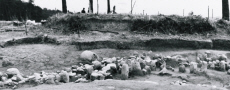 ただ粘土で覆われ底が丸い、大形の木棺に埋葬されていた主人公は、頭の周辺には鮮やかな朱が多少層になって見られたが、楯築の朱の量とは比べ物にならぬ。二本の剣が頭の近くにあっただけで他の副葬品は、何も発見できなかった。