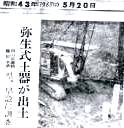 上の中央写真は考古館に残る写真、その年の6月初旬に私どもの撮った写真。右端は同様6月の初旬の、やはり新聞紙上の写真。このような古い新聞記事や写真は、先般来話題としたゴミになる新聞では無く、考古館に保存されてきた資料や、関係記事切り抜きスクラップブックによる。