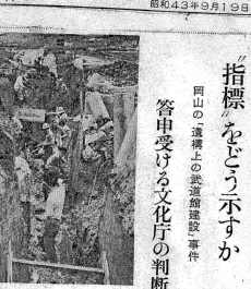 県の遺跡台帳にも載る、周知の遺跡で、県が行う武道館建設工事。、何の調査も無く、工事がはじまり、パイルはどんどん打ち込まれ、土地はブルドーザーで掘り返された。これに対し、社会的な非難が強まり、急遽一般の県庁職員などを集めて調査と称し、遺跡を掘り返したことで、新聞紙上に「潮干狩りのような騒ぎ」(読売1968/5/29)と書かれた。