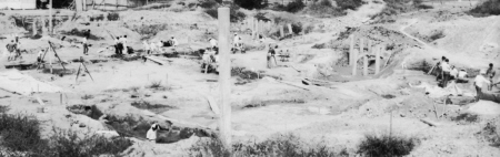 昭和43(1968)年5月20日に、津島グランドからの弥生土器出土が報じられた。パイルとブルドーザーの間に土器が見える