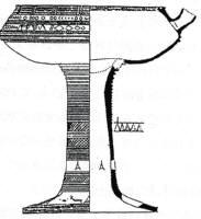 上に示した拓本中の鹿、津島遺跡の2頭並んで駆けているような鹿は、銅鐸絵画にも多いスタイルだが、それと比べ、奇妙な円いものの前で思案しているようでもある。 これは広島県東北部で中国山中、かつては岡山と共に吉備国の一部であった備後の地、三次市(三和町)矢原遺跡出土の、台脚付きの注口土器に描かれていたものである。左に図を示したように、美しく飾られた高さ50cm近くある、大形の注口土器であって、鹿は、脚端の広がった部分にぐるりと描かれた奇妙な絵の一部である(拓本参照)。
