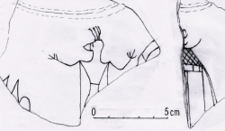 この土器に絵を描いた人物は、少なくとも絵画付きの銅鐸を見ていたか、或いは銅鐸生産者とか、保管者などとも無縁の人物ではなかったのでは?・・・と思うのも決して間違いではないであろう・・・・が、しかし当時の土器に描かれた絵が、まるで銅鐸写しに過ぎないというのではない。むしろこうした例は少ないようで、土器画の画家には、土器に描く主張があったのではと思わすものである。