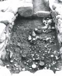 (右上)基底部のみ残った石室と遺物出土状況